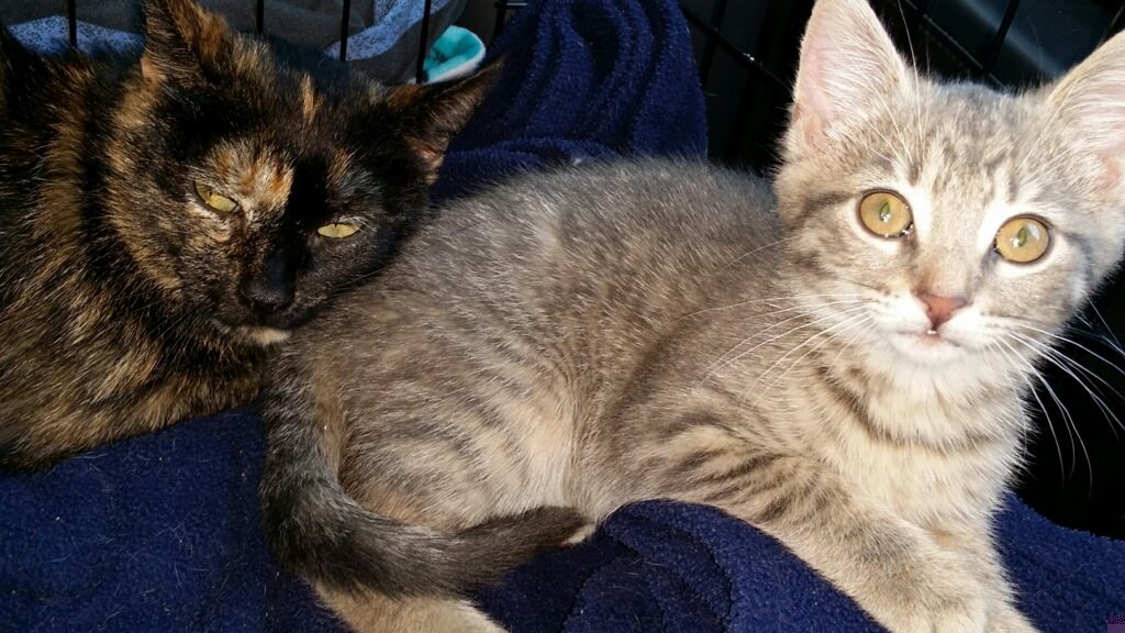 Just in case you were worried. Here is a new photo of Luna in her new home and another before she was adopted with her mom, Felix (aka Katniss). ~ diana