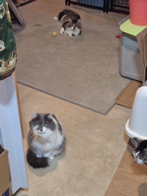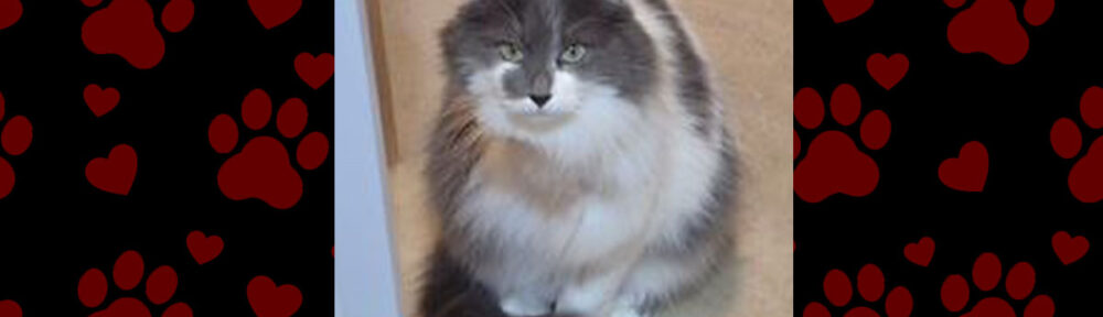 She’s the beautiful gray and white kitty, now healing, making new friends, and doing so well.